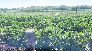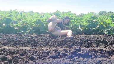 A SLENDER BRUNETTE SAW A FIELD IN WHICH LARGE ZUCCHINI GROW, SHE WAS NOT AT A LOSS AND PLUCKED A FEW PIECES