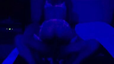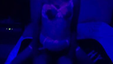 . Fucking sexy wife under black light in her honeymoon lingerie.