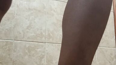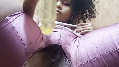 . Big ass brunette is in her bathroom about to break her lycra to get a hot and delicious orgasm until she wets the entire floor with her sweet squirt