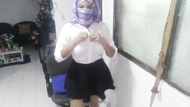 REAL HOT ARAB MILF IN SCHOOL OUTFIT MASTURBATES AND SQUIRTS TO ORGASM IN NIQAB WHILE HUSBAND AWAY